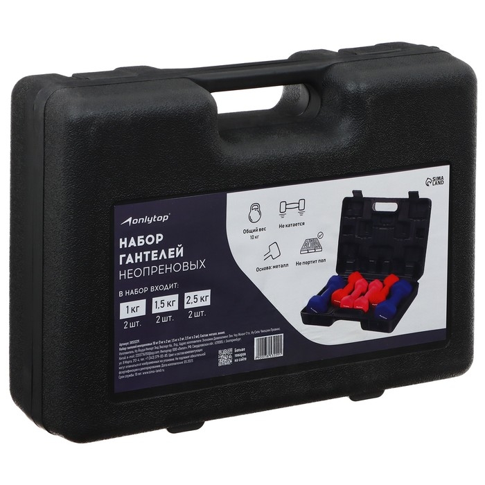 Набор гантелей неопреновых ONLYTOP 10 кг: 1 кг х 2 шт., 1,5 кг х 2 шт., 2,5 кг х 2 шт.
