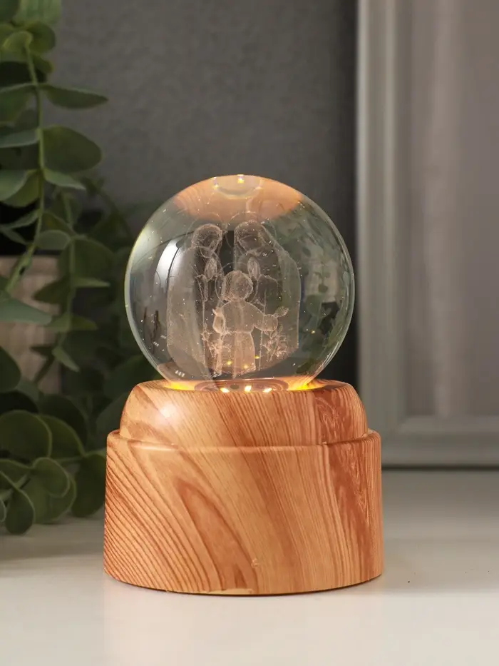 Сувенир стекло свет "Шар. Рождение" 6хLED шар d=6 см, крутится, USB 7х7х10 см