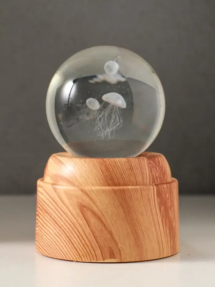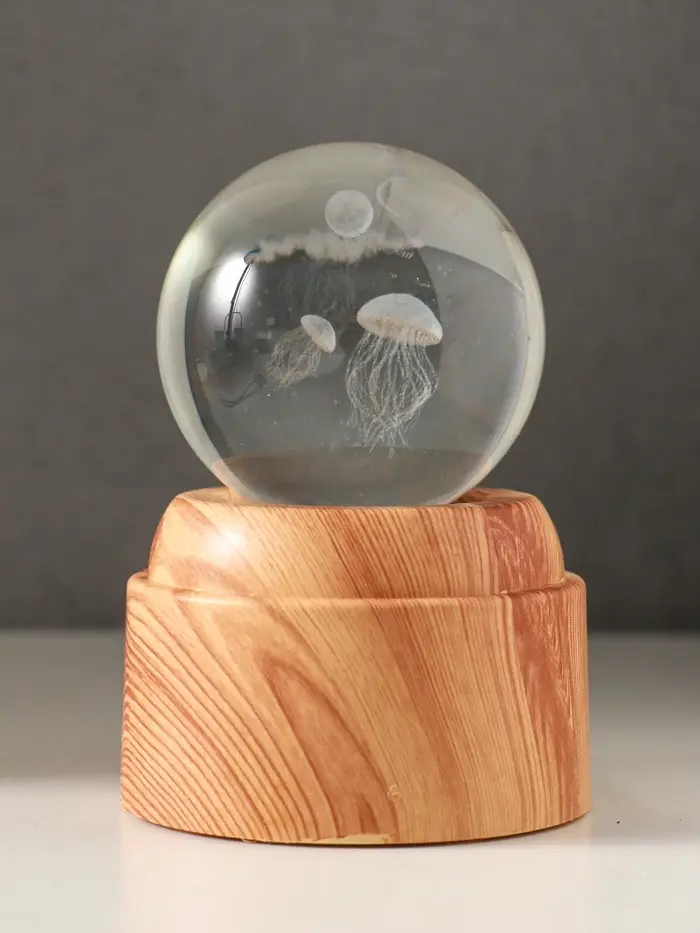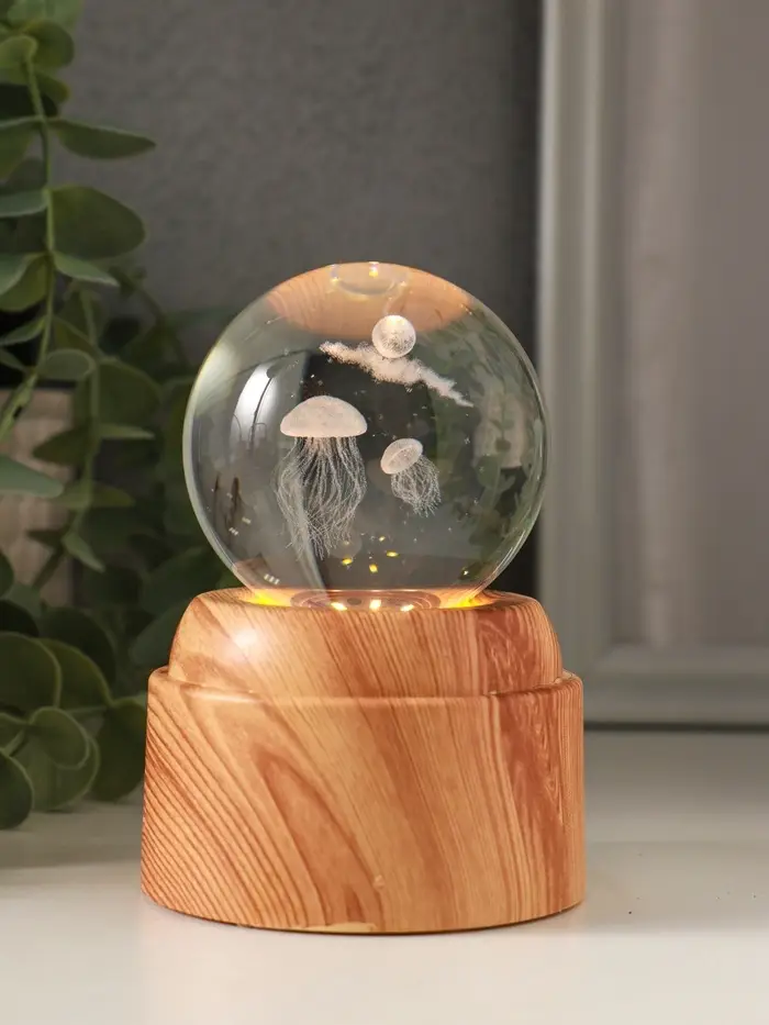 Сувенир стекло свет "Шар. Медузы" 6хLED шар d=6 см, крутится, USB 7х7х10 см