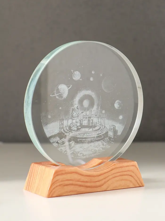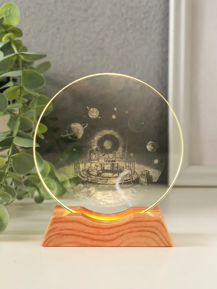 Сувенир стекло свет "Диск.Космическая станция" 5хLED d=10 см, USB 10х4х11,4 см