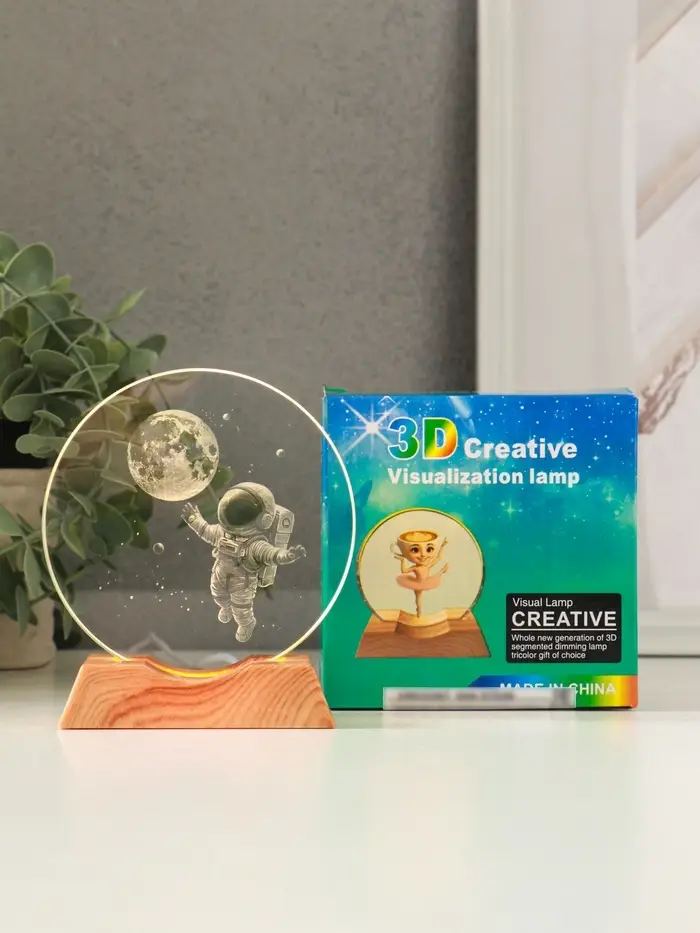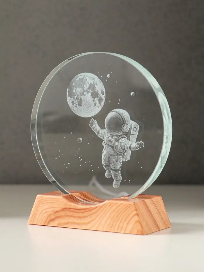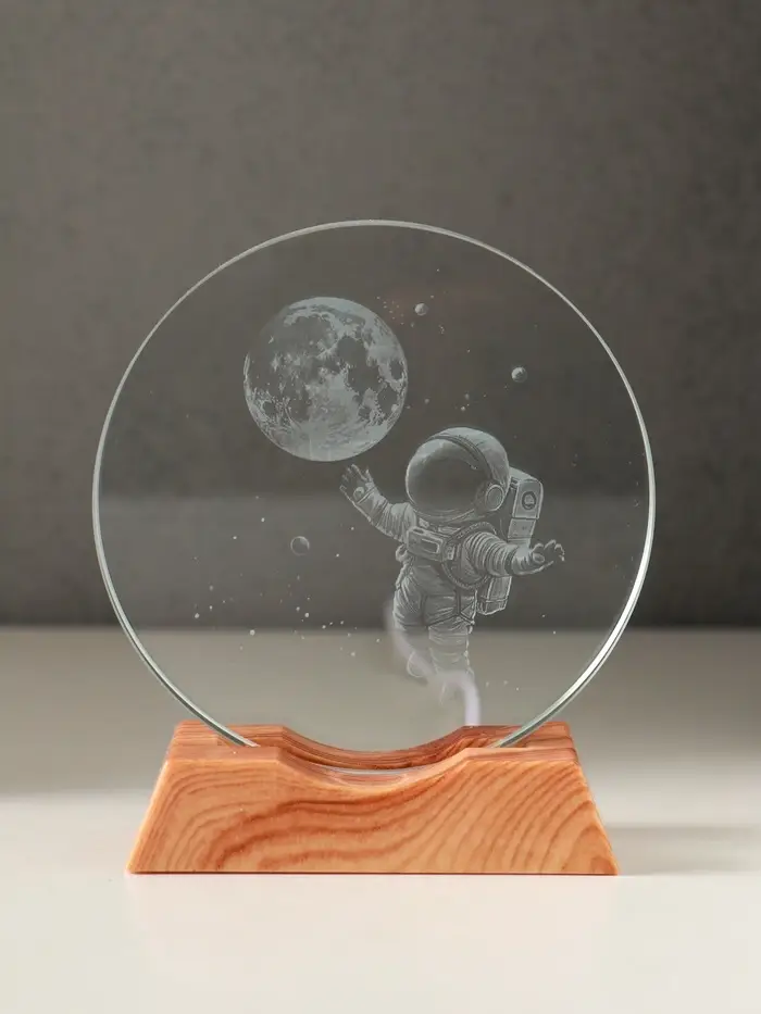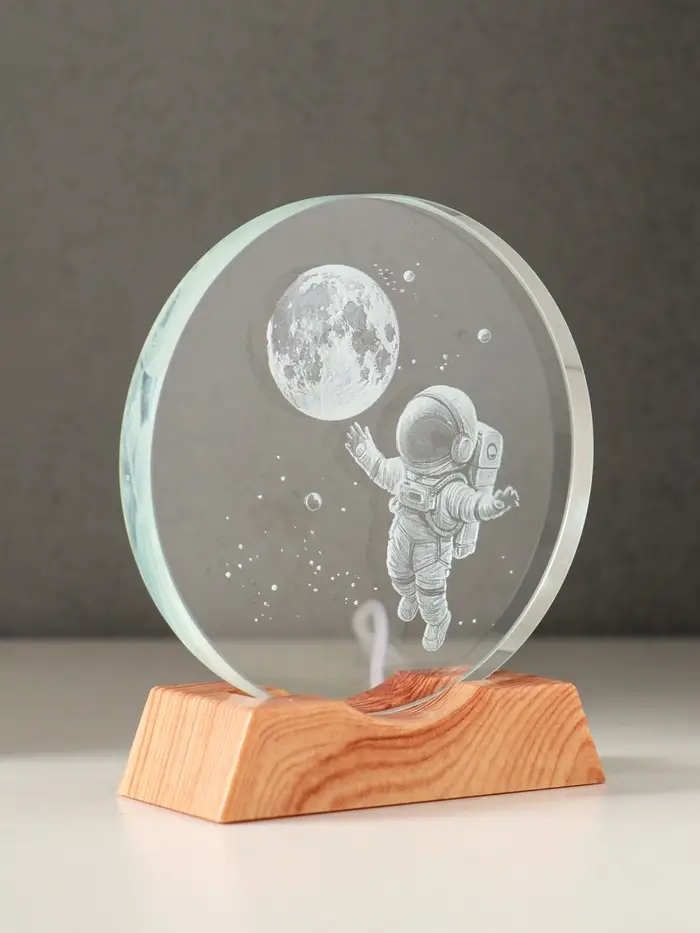 Сувенир стекло свет "Диск. Полёт космонавта" 5хLED d=10 см, USB 10х4х11,4 см