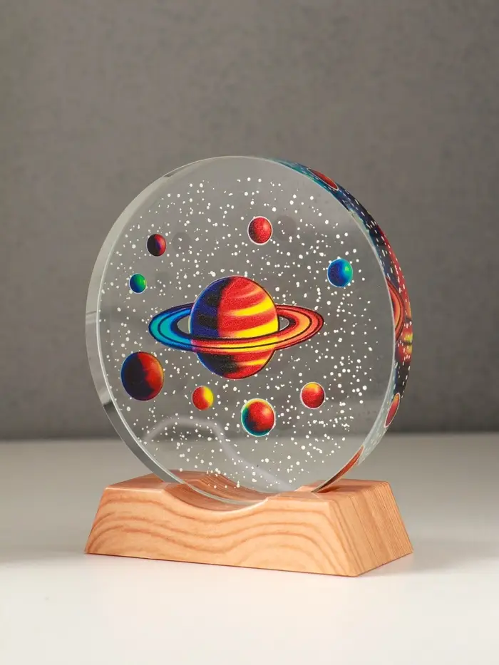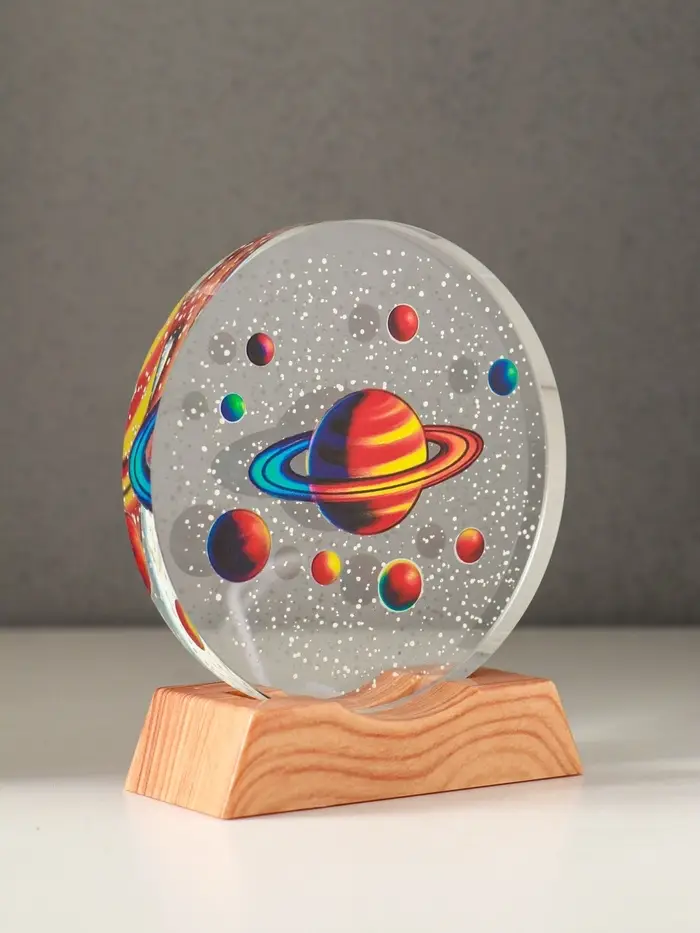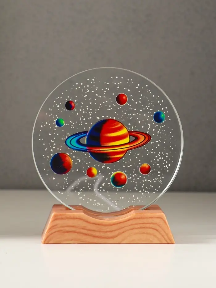 Сувенир стекло свет "Диск. Планетарий" 5хLED d=10 см, USB, цветной 10х4х11,4 см