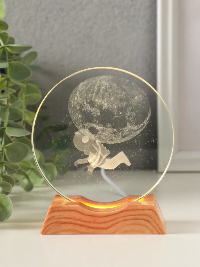 Сувенир стекло свет "Диск. Открытый космос" 5хLED d=10 см, USB 10х4х11,4 см