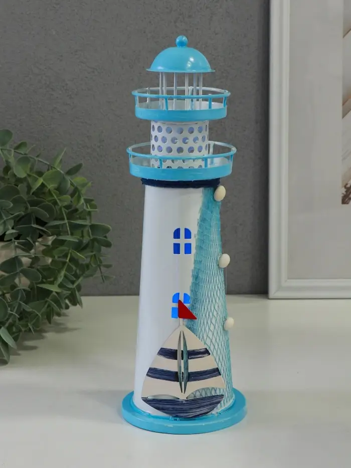 Сувенир настольный "Маяк с парусником" голубой, 3хLR1130, RGB, LED 9,5х9,5х28,5 см