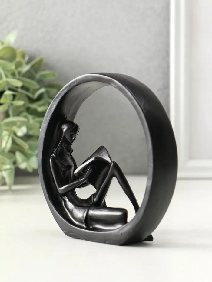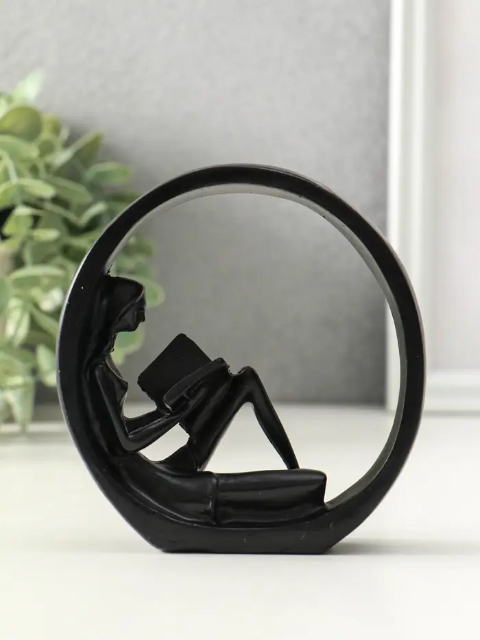 Сувенир полистоун "Девушка читает книгу" чёрный 4х11,3х11,7 см