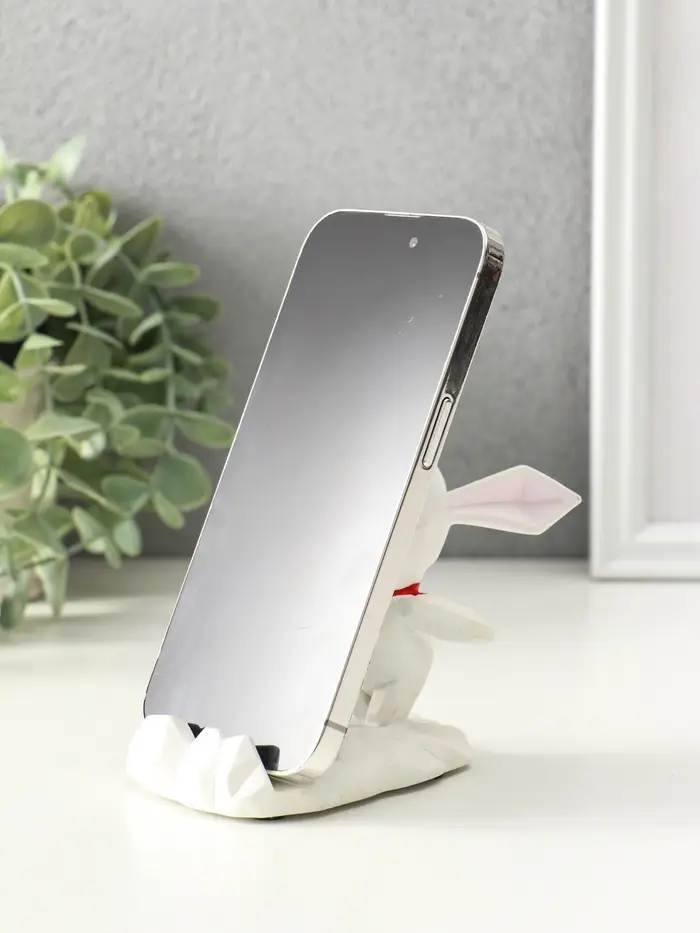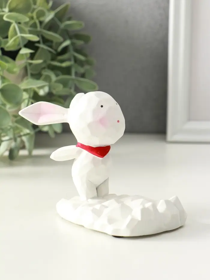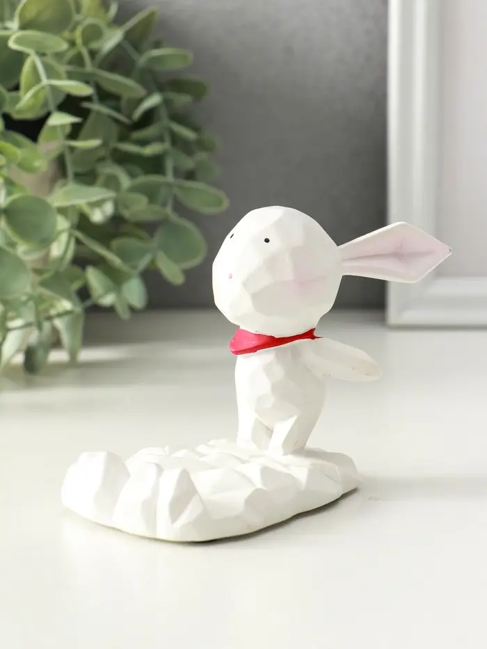 Сувенир полистоун подставка для телефона "Зайка с шейным красным платком" 6,5х9х8,5 см