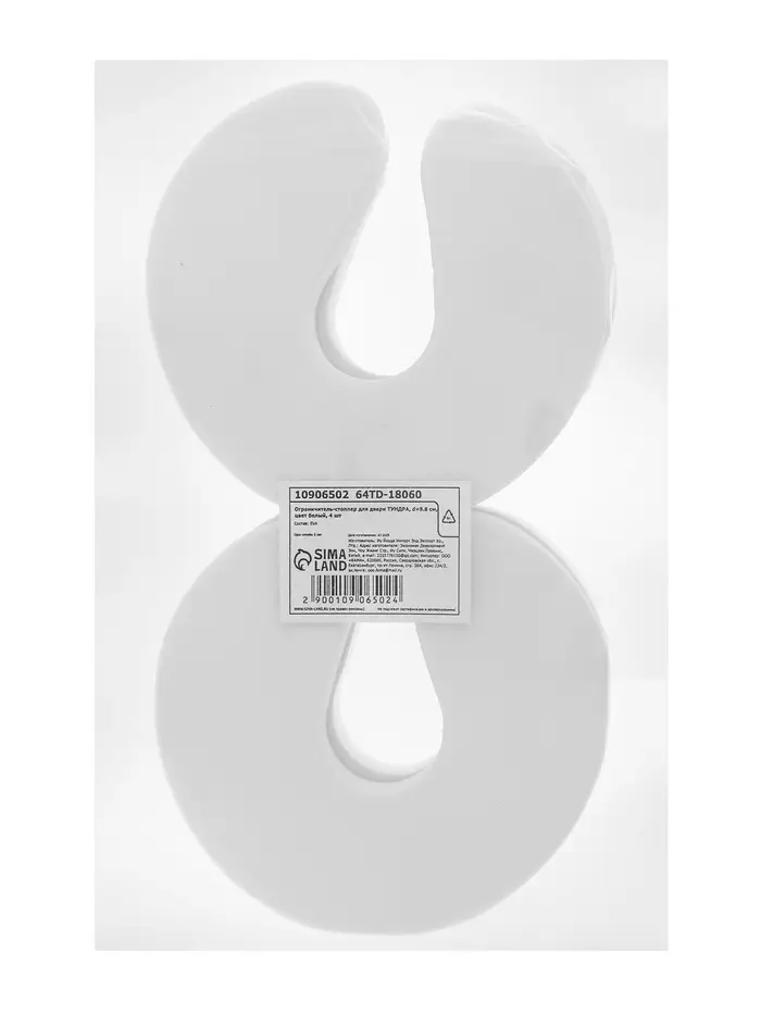 Ограничитель-стоппер для двери ТУНДРА, d=9.8 см, цвет белый, 4 шт