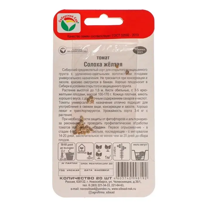 Сибирский среднеспелый сорт для открытого и защищенного грунта с удлиненно-овальными золотистыми плодами универсального назначения. Не трескается при консервации и засоле, красиво смотрится в банках. Хорошо плодоносит в Сибири в условиях открытого и защищенного грунта.