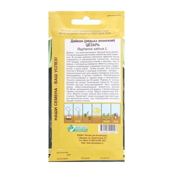 Семена Дайкон "Цезарь", ц/п, среднеранний, ц/п, 1 г