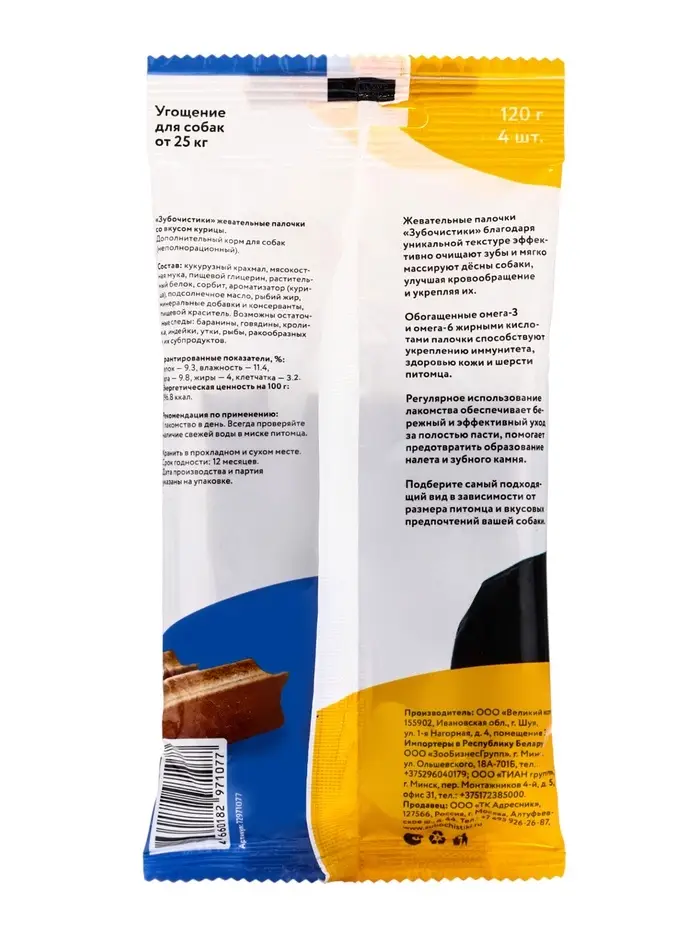 Зубочистики Жевательные палочки для собак крупных пород со вкусом курицы, 120 г