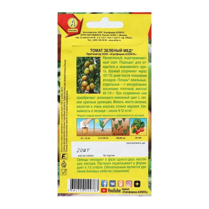 Семена Томат "Зеленый мед", 20 шт
