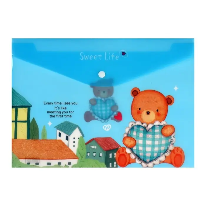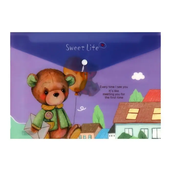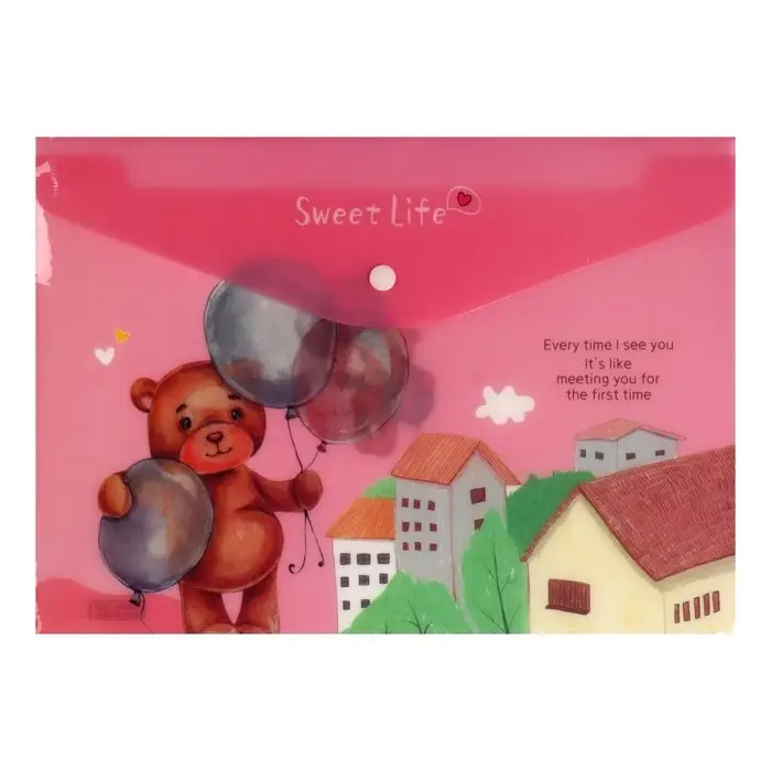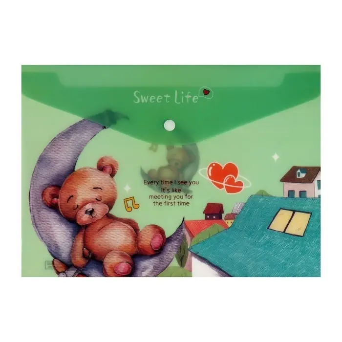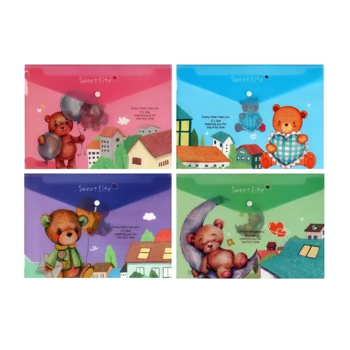 Папка-конверт на кнопке, А4, 180 мкм, "Мишка", МИКС