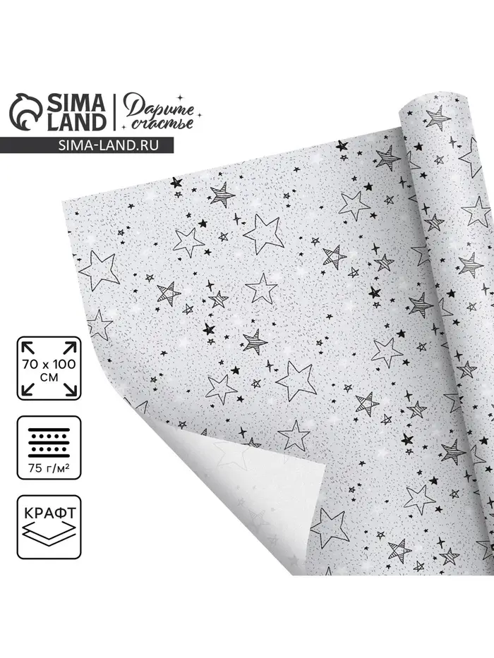 Бумага упаковочная крафтовая «Звёздочки», 1 лист, 70 х 100 см