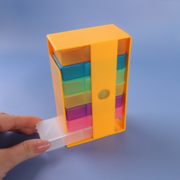 Воспользуйтесь таблетницей-органайзером, чтобы не забыть в течение дня принять лекарственные препараты и укрепить иммунитет. Изделие сохранит необходимые лекарства, чтобы в важный момент вам не пришлось лихорадочно искать пилюлю в сумке или чемодане. Рассортируйте содержимое аптечки на каждый день недели и отправляйтесь в путь. Контейнер подходит для хранения различных мелочей не только в путешествии, но и дома.