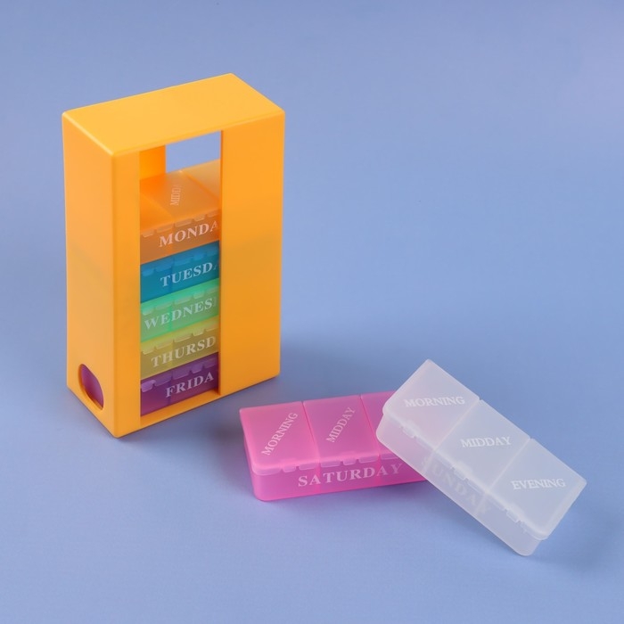 Таблетница - органайзер «Неделька», съёмные ячейки, утро/день/вечер, 19,2 × 8,5 × 2,1 см, 7 контейнеров по 3 секции, разноцветная