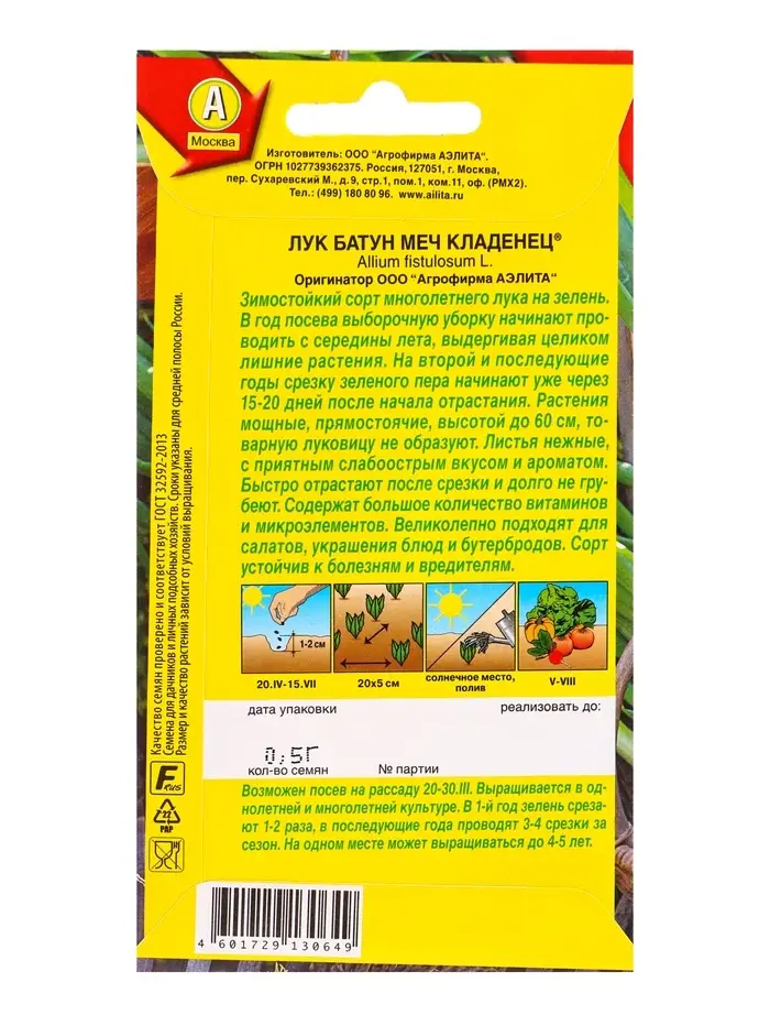 Семена Лук батун Меч Кладенец Мн, Ц/П,0,5 г