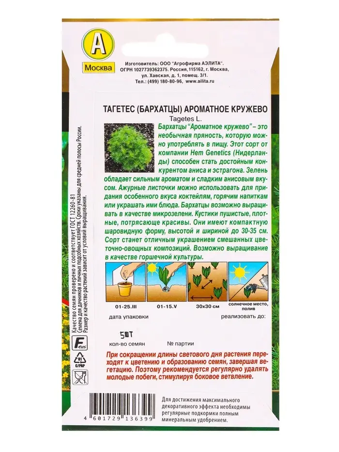 Семена цветов Бархатцы Ароматное кружево С. Hem Genetics Золотая серия, Ц/П,5 шт.