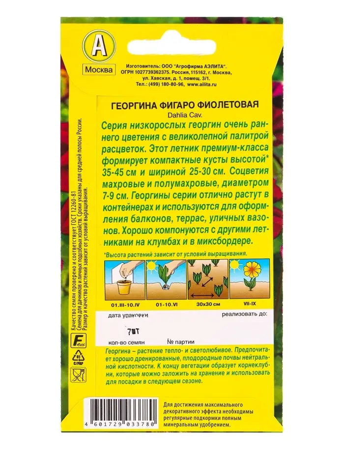 Семена цветов Георгина Фигаро махровая фиолетовая , Ц/П,7 шт.