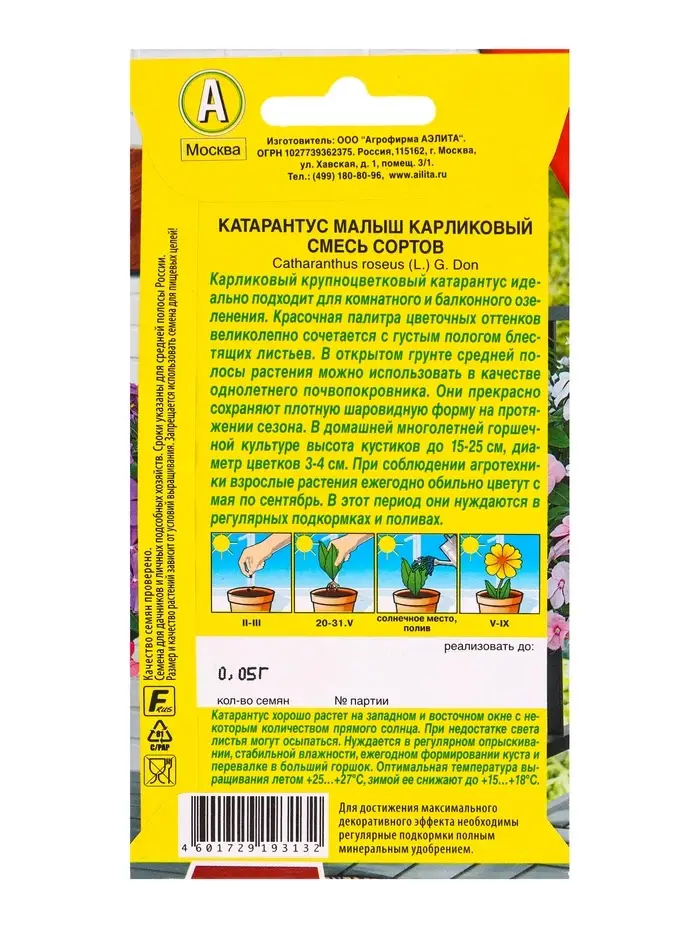 Семена цветов Катарантус Малыш карликовый, смесь сортов Цветущий балкон, Ц/П,0,05 г