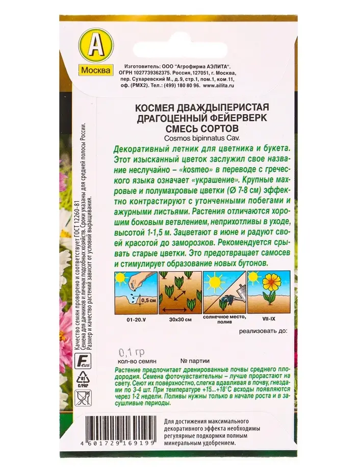 Семена цветов Космея Драгоценный фейерверк, смесь сортов Золотая серия, Ц/П,0,1 г