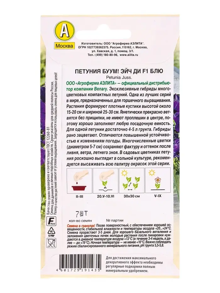 Семена цветов Петуния БУУМ! Эйч Ди F1 Блю многоцветковая (драже) Benary, Ц/П,7 шт.