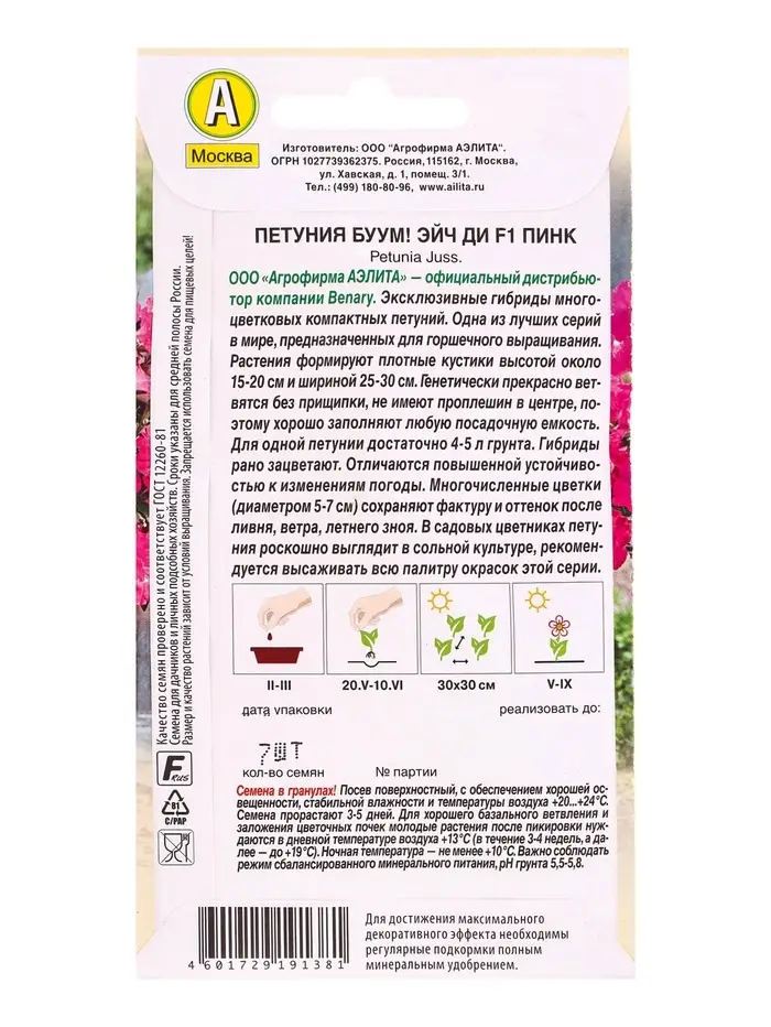 Семена цветов Петуния БУУМ! Эйч Ди F1 Пинк многоцветковая (драже) Benary, Ц/П,7 шт.
