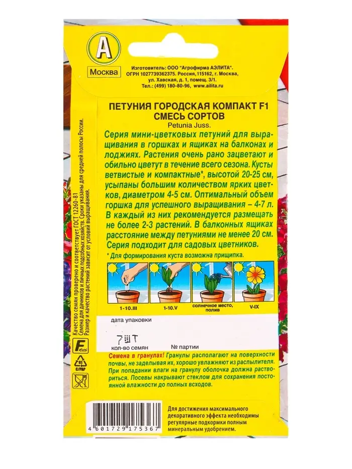 Семена цветов Петуния Городская компакт F1, смесь сортов (драже) Цветущий балкон, Ц/П,7 шт. 1094567