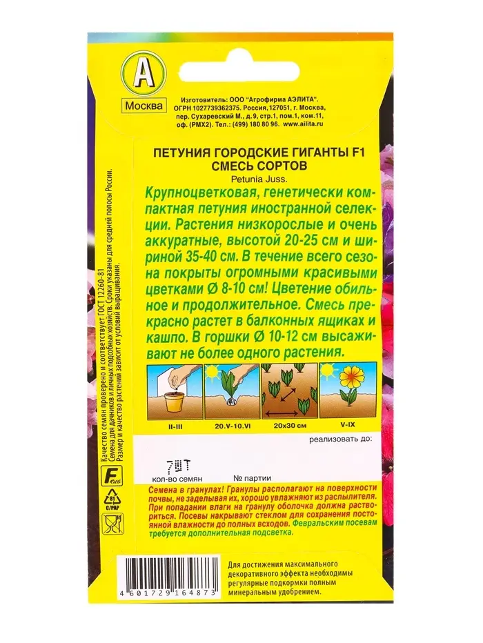 Семена цветов Петуния Городские гиганты F1, смесь сортов (драже в пробирке), Ц/П,7 шт.