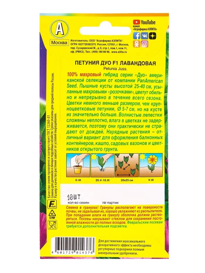 Семена цветов Петуния Дуо F1 лавандовая (драже в пробирке) С. PanAmerican, Ц/П,10 шт.