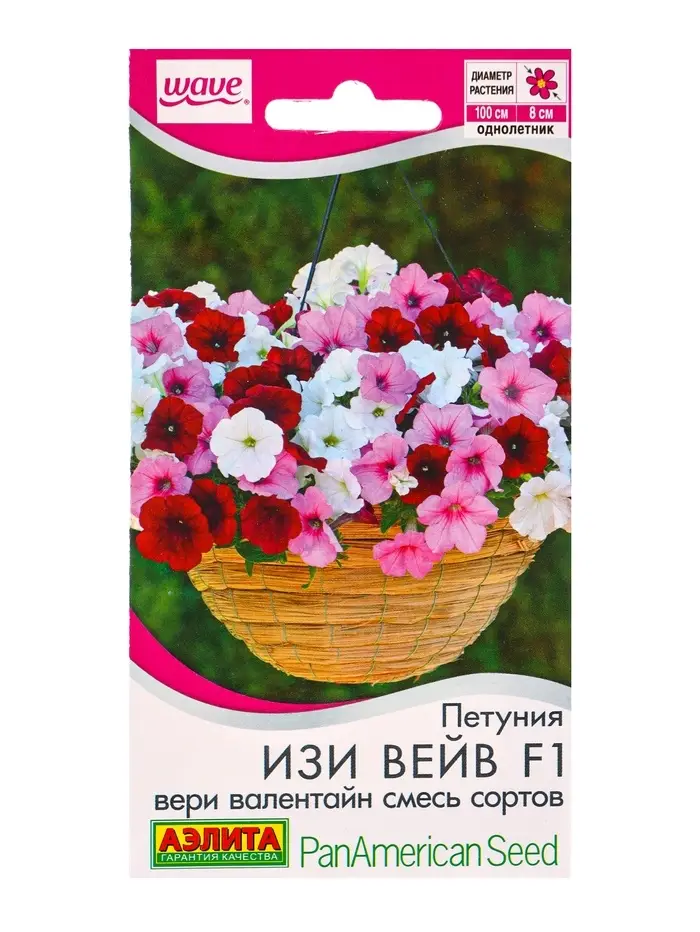 Семена цветов Петуния Изи вейв F1 вери валентайн, смесь сортов (драже) PanAmerican Wave, Ц/П,4 шт. 1