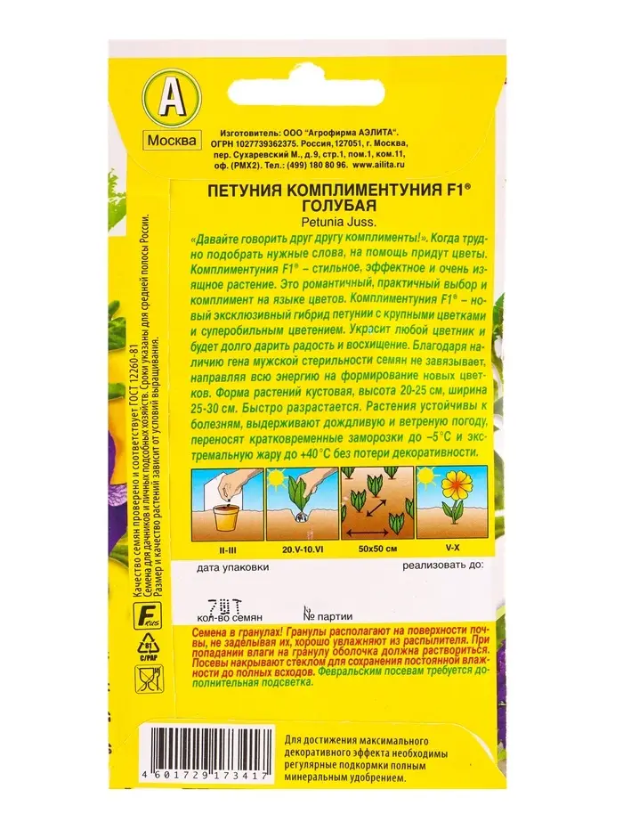 Семена цветов Петуния Комплиментуния F1 голубая крупноцветковая (драже в пробирке), Ц/П,7 шт. 10945