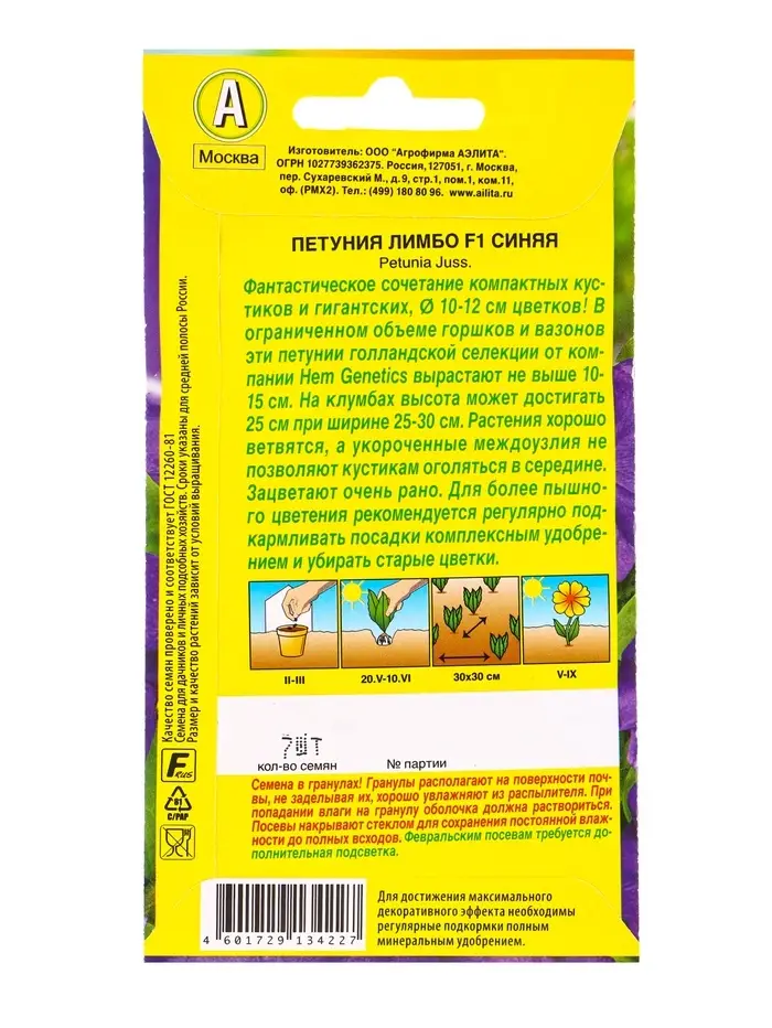 Семена цветов Петуния Лимбо F1 синяя крупноцветковая (драже) С. Hem Genetics, Ц/П,7 шт.
