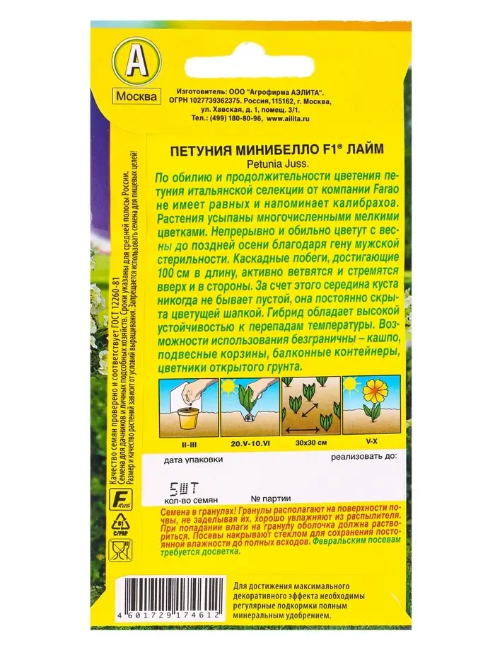 Семена цветов Петуния мини Минибелло F1 лайм многоцветковая (драже) С. Farao, Ц/П,5 шт.