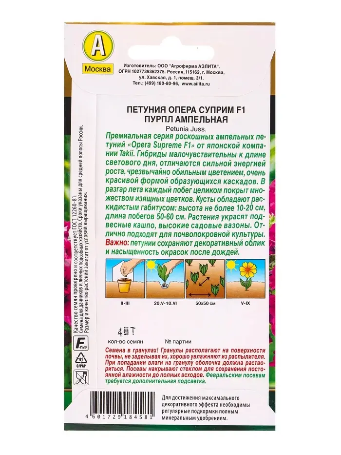 Семена цветов Петуния Опера суприм F1 пурпл ампельная (драже) С. Takii Seed , Ц/П,4 шт.