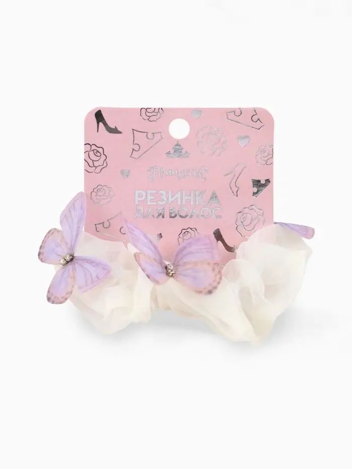 Резинка для волос «Бабочки» бежевая, Принцессы