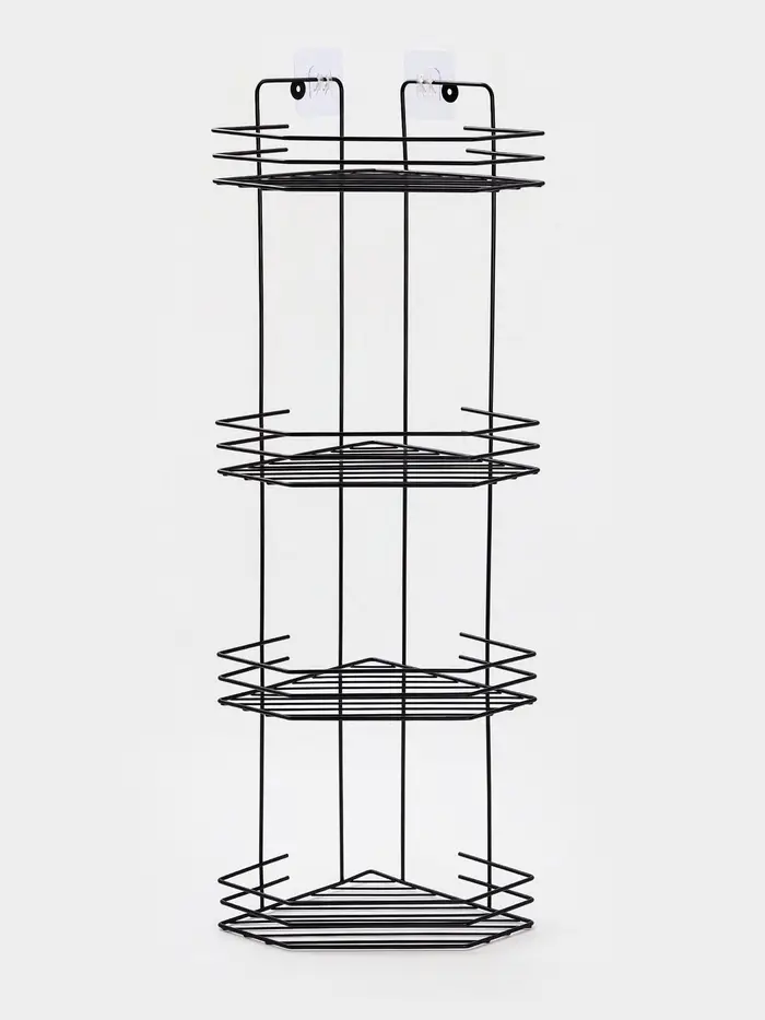 Полка для ванной угловая 4-х ярусная, 20.5×20.5×72 см, чёрная