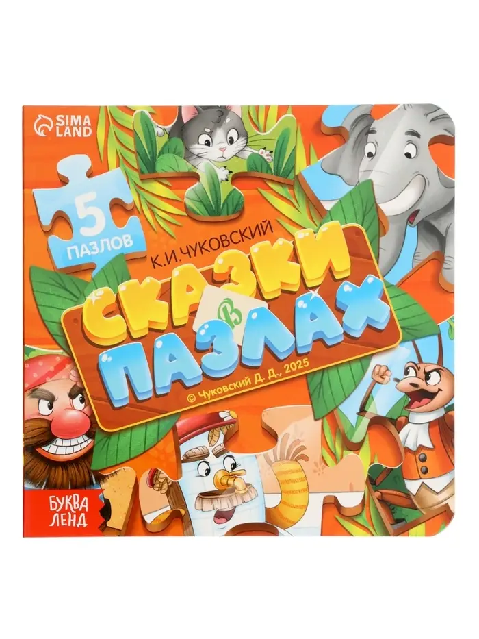 Книга картонная "Сказки в пазлах", 5 пазлов, 12 стр., Корней Чуковский