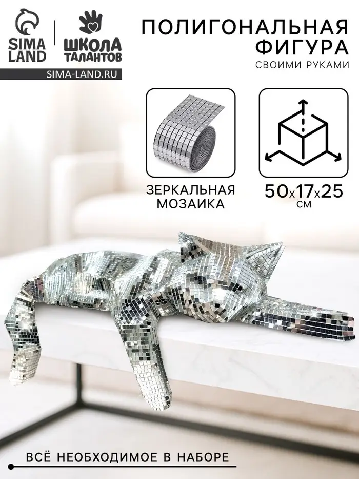Набор для создания полигональной фигуры из зеркальной мозаики "Кошечка"