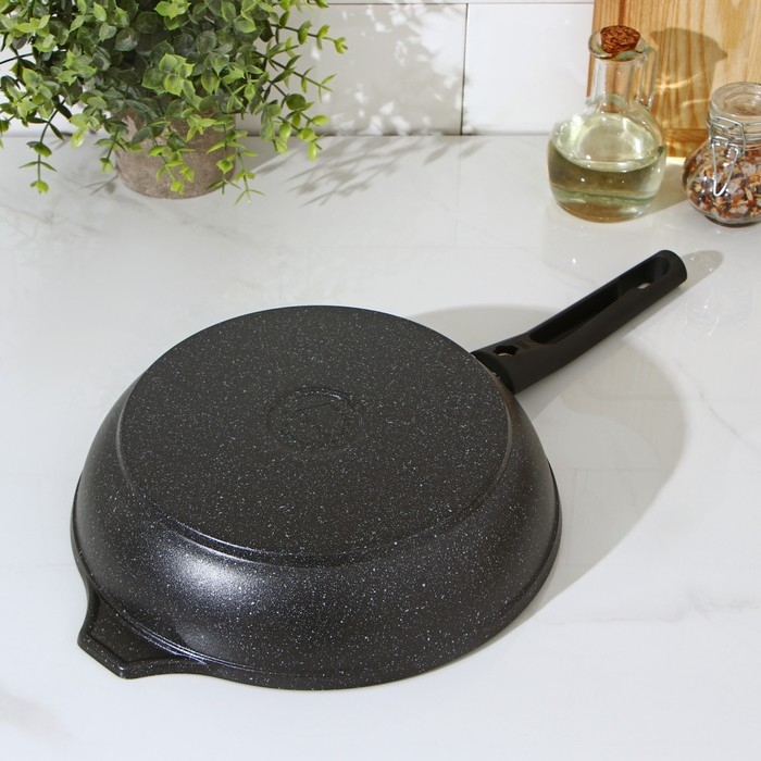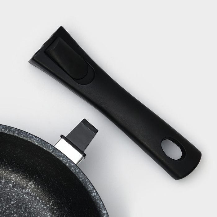 Сковорода, d=24 см, съёмная ручка, антипригарное покрытие, цвет тёмный мрамор