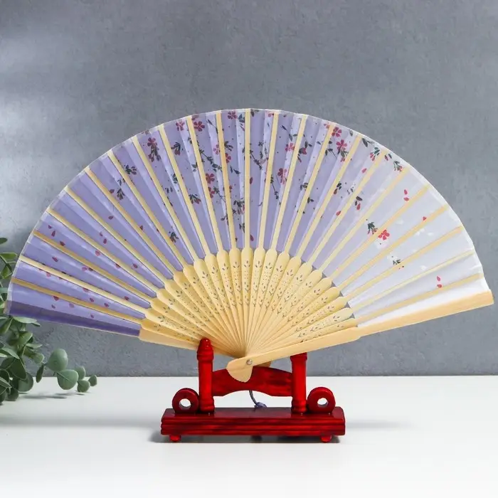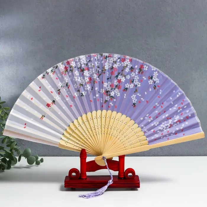 Веер дерево, текстиль h=21 см "Лепестки" сиреневый, с кисточкой