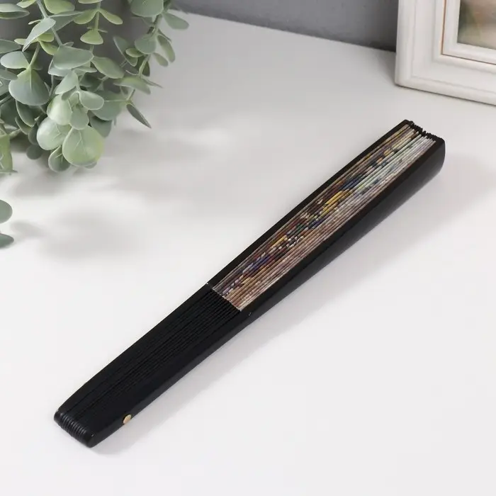 Веер пластик, текстиль h=26,5 см "Лодки на берегу"
