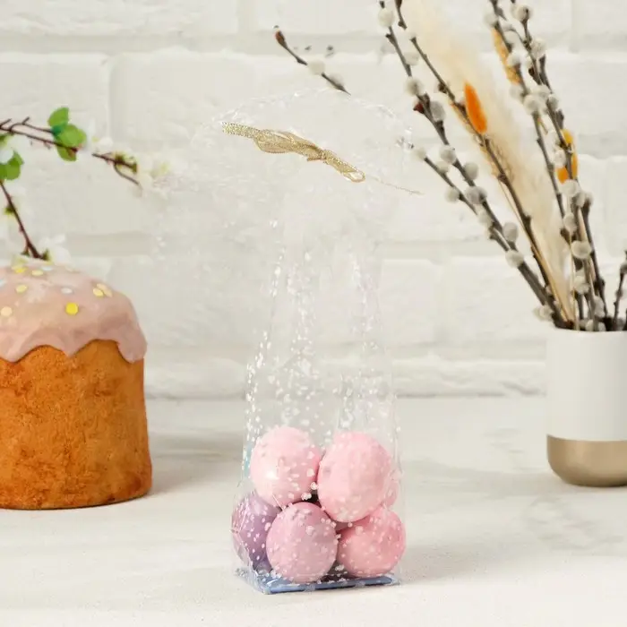 Благодаря жесткому дну и форме пакета, в него вы сможете упаковать как целый набор косметики, так и миниатюрную статуэтку. Даже небольшой кактус или гиацинт легко уместятся внутри такого пакета.