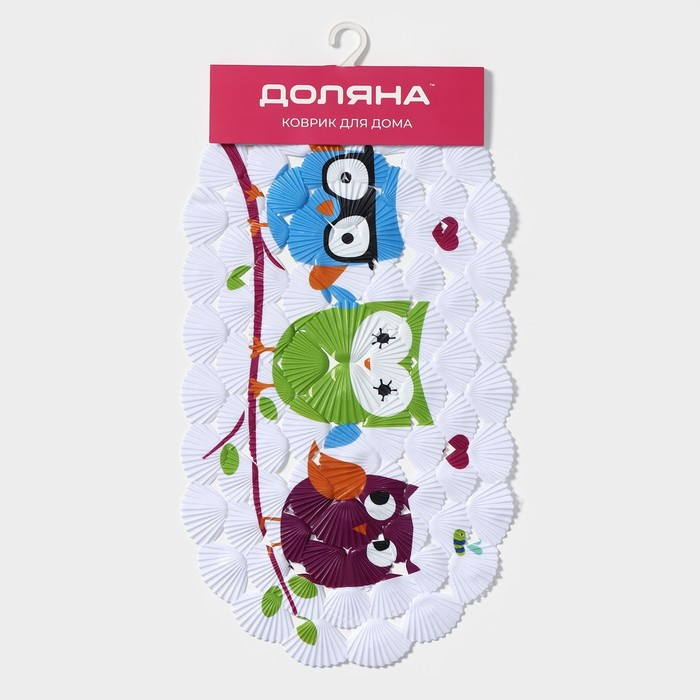 Коврик противоскользящий в ванну на присосках Доляна «Совы», 37×67 см