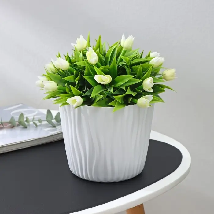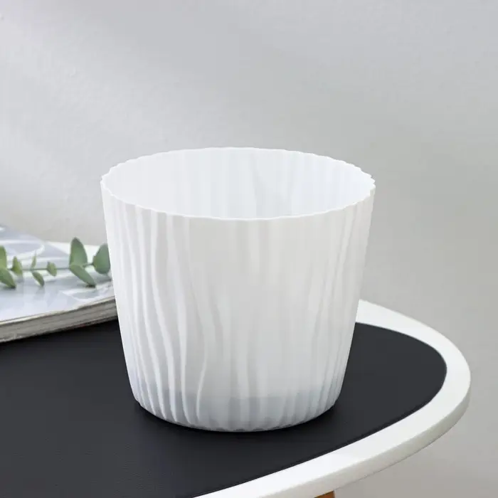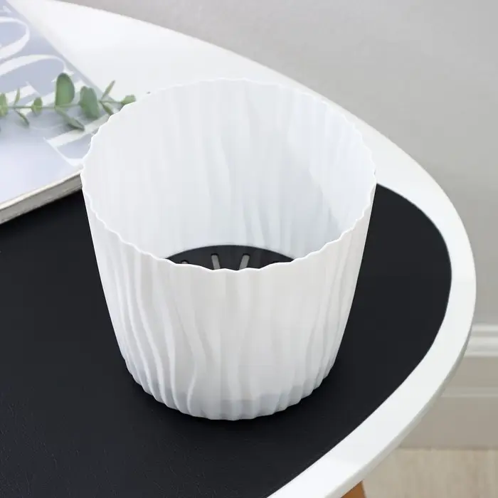 Кашпо для цветов со вставкой «Волна», 2 л, d=16 см, h=13,5 см, цвет белый