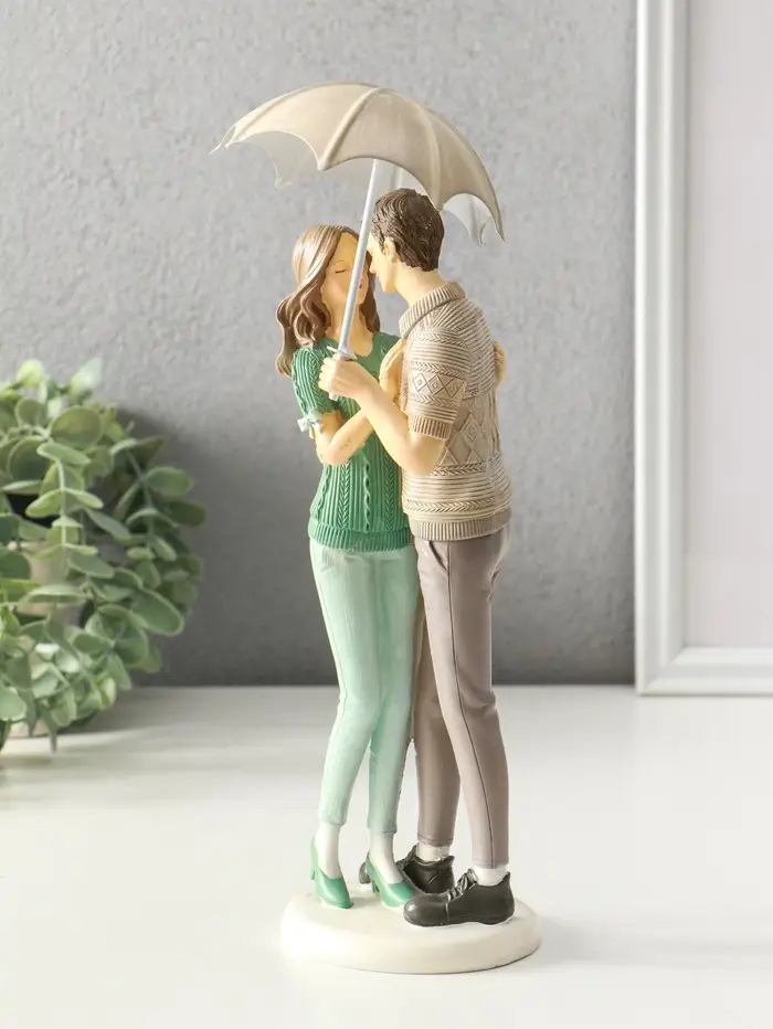 Сувенир полистоун "Влюблённые в вязанных джемперах, под зонтом" 8,5х9,5х25,5 см