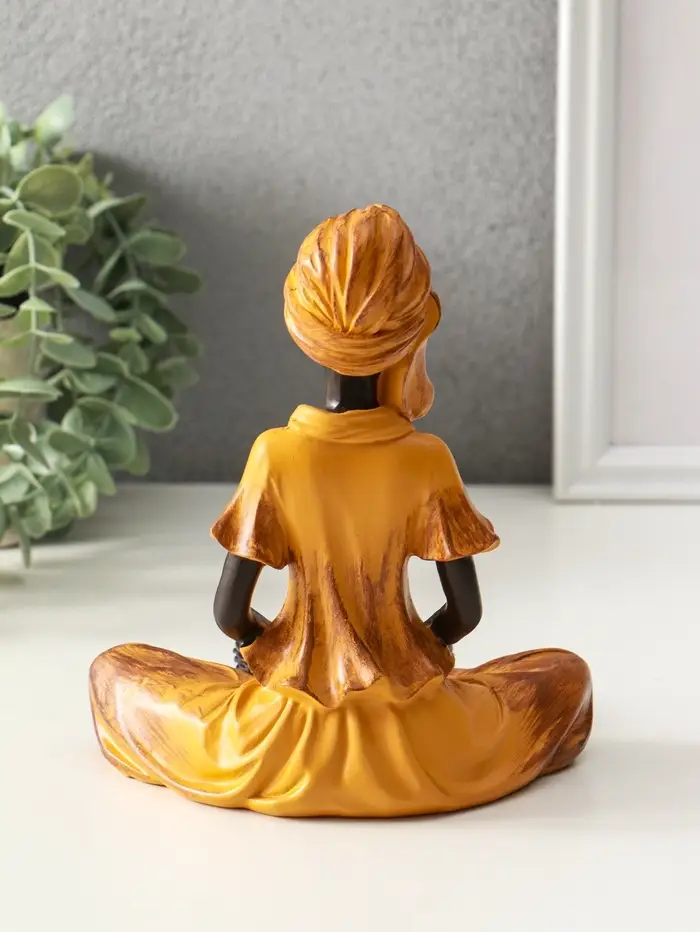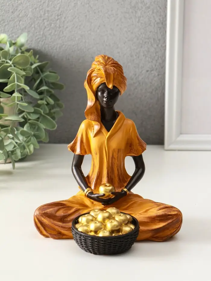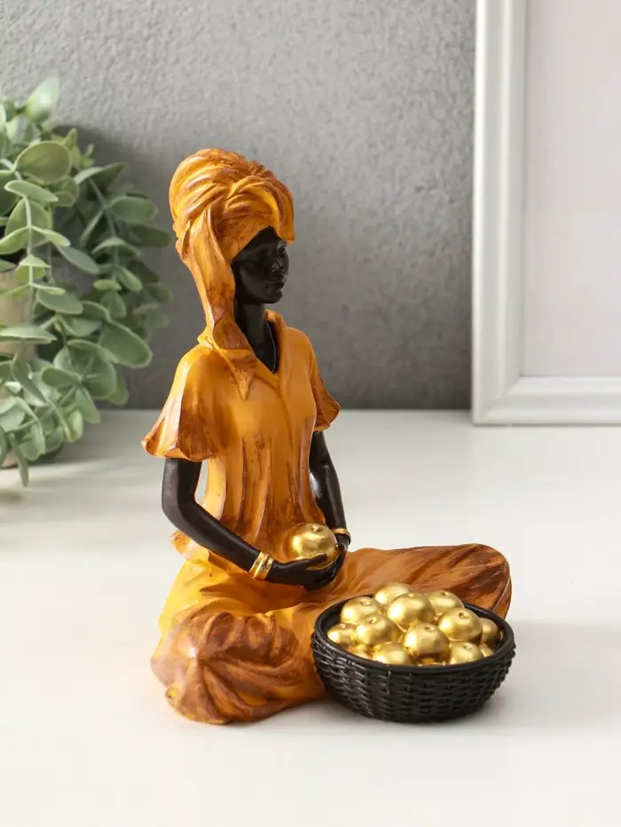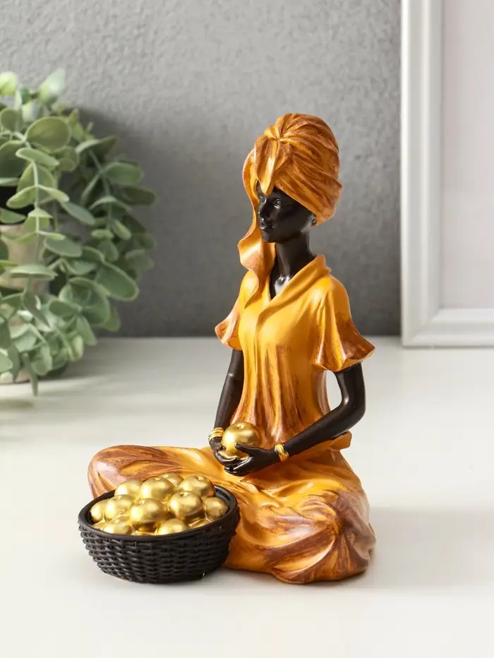 Сувенир полистоун "Африканка в горчичном наряде, с яблоками в корзине" 14х15,5х17,5 см