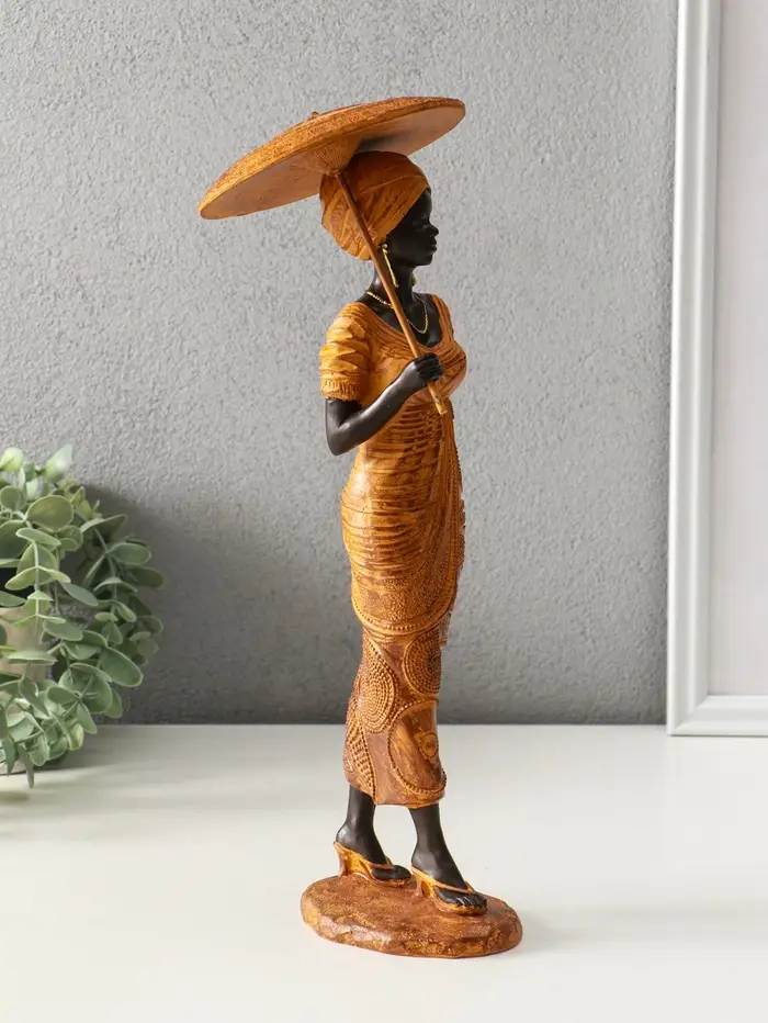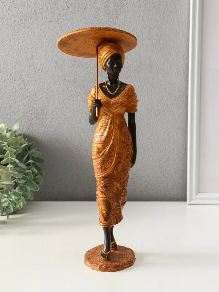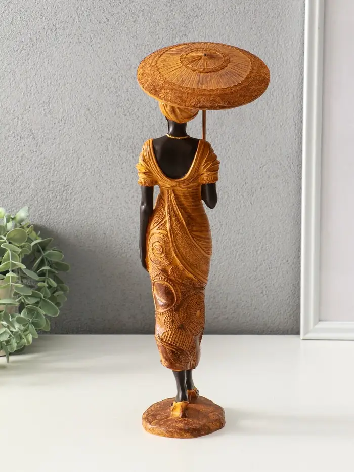 Сувенир полистоун "Африканка в горчичном наряде с зонтом" 11,5х11,5х36,5 см