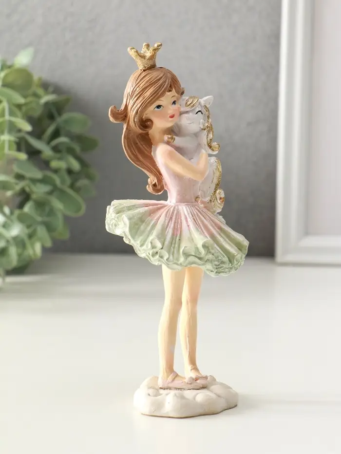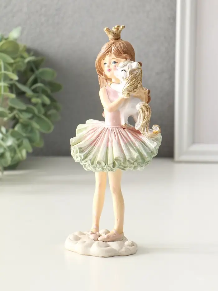 Сувенир полистоун "Девочка-принцесса с маленьким единорогом" 7х7,5х17,5 см