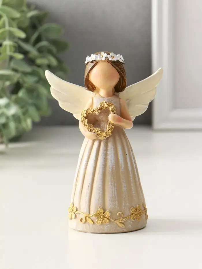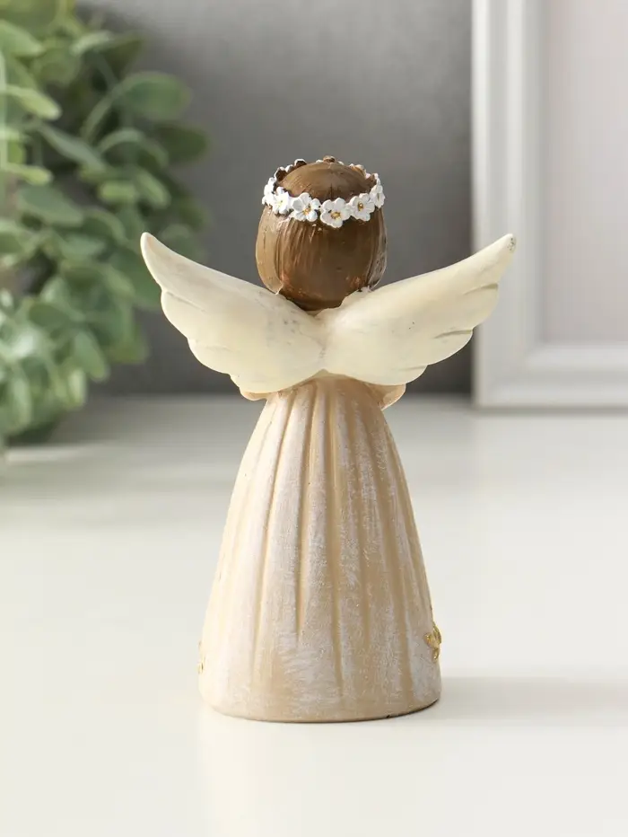 Сувенир полистоун "Девочка-ангел с венком-сердце" 4,5х8х12 см