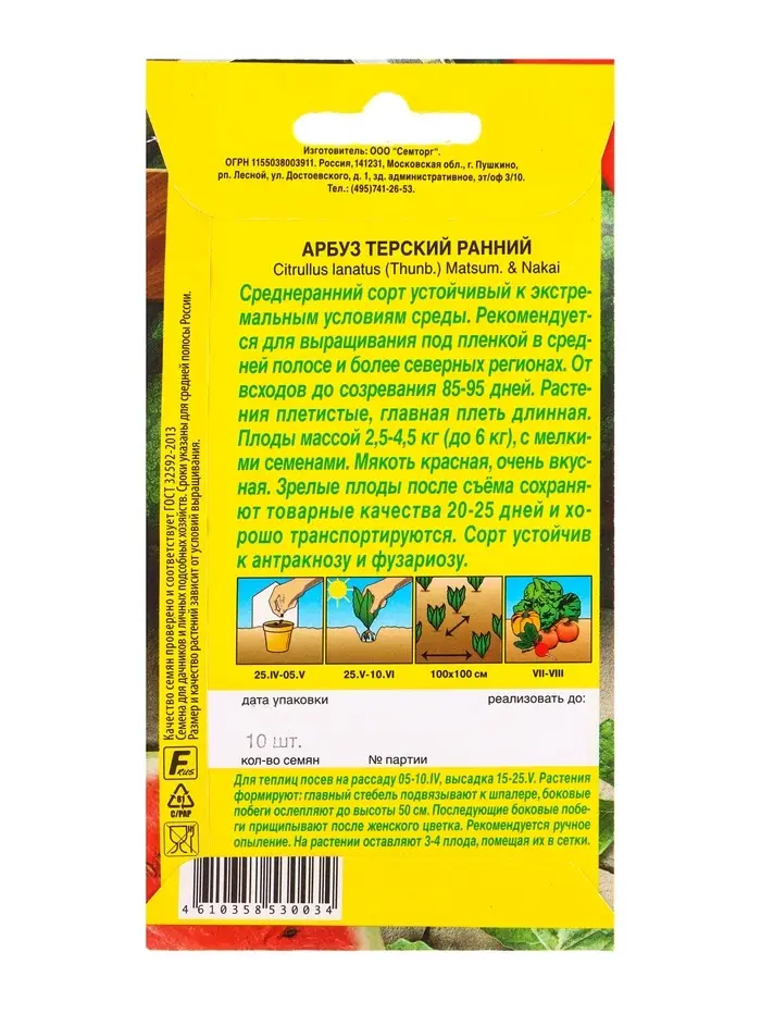 Семена Арбуз Терский ранний Семторг, Ц/П СТ,10 шт.